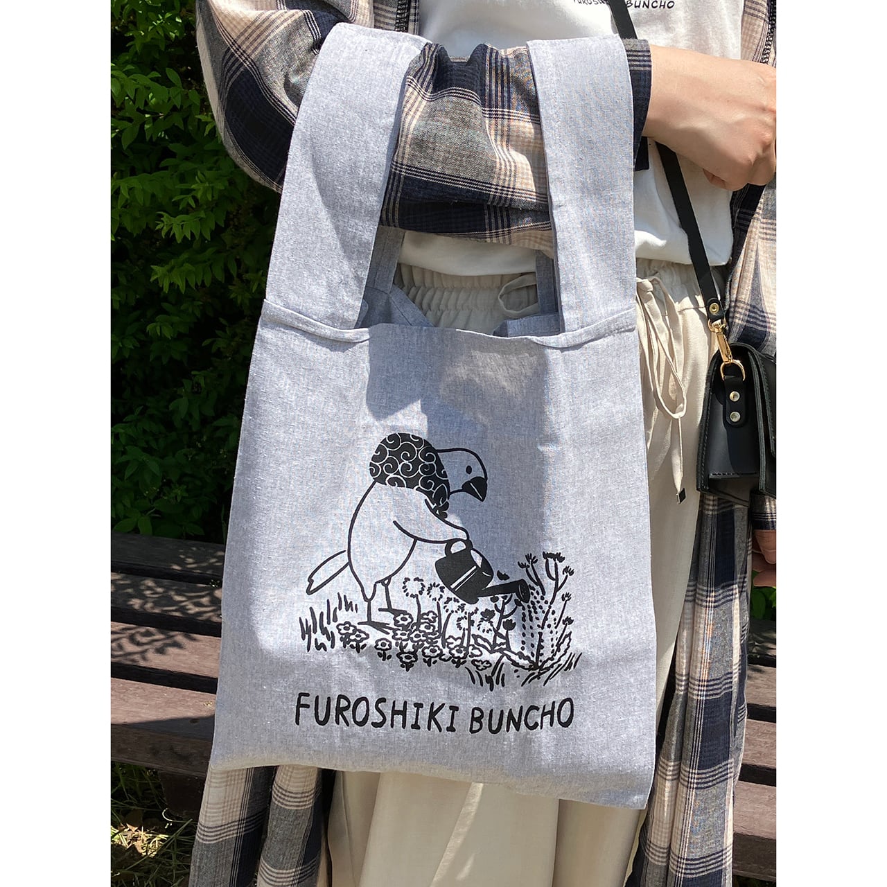 くるっと巻いて持ち歩けるエコバッグです。生地がしっかりしているのである程度重いものを入れても安定します。1色プリントのシンプルなデザインなので普段使いにもおすすめです。