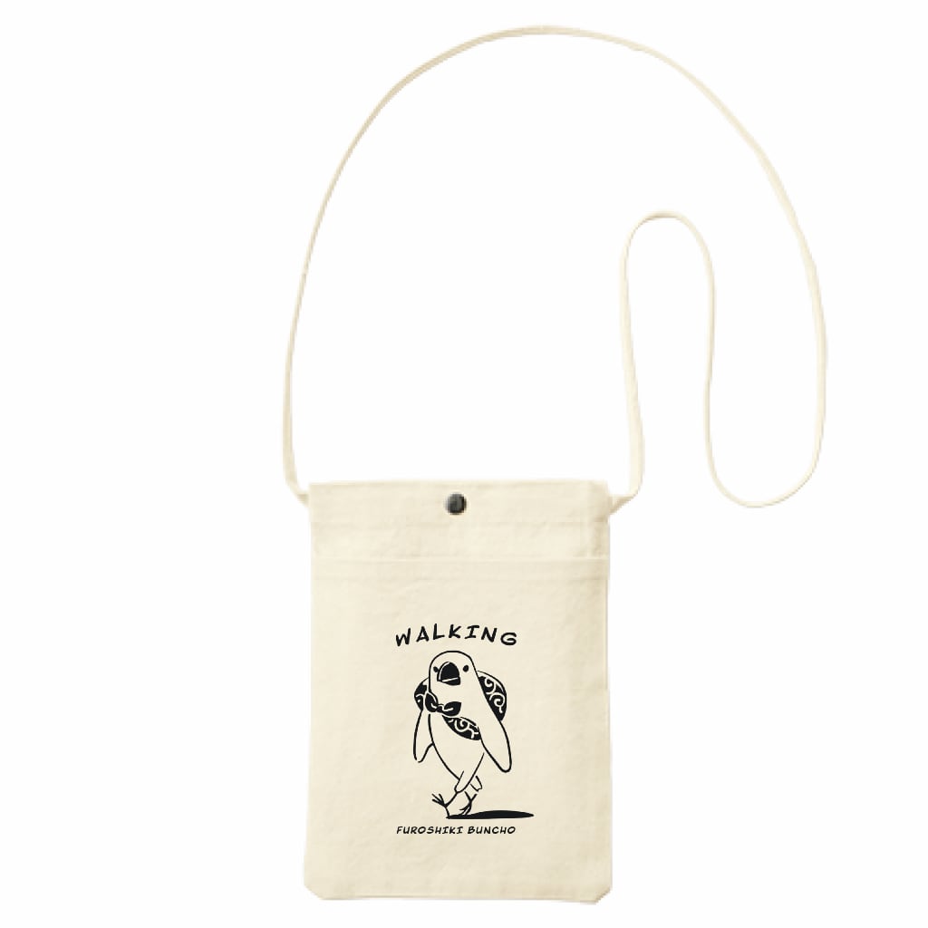 てくてく歩くふろしき文鳥がかわいいサコッシュです。持って歩けば一緒にお散歩気分!