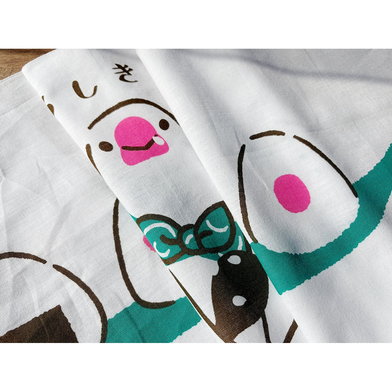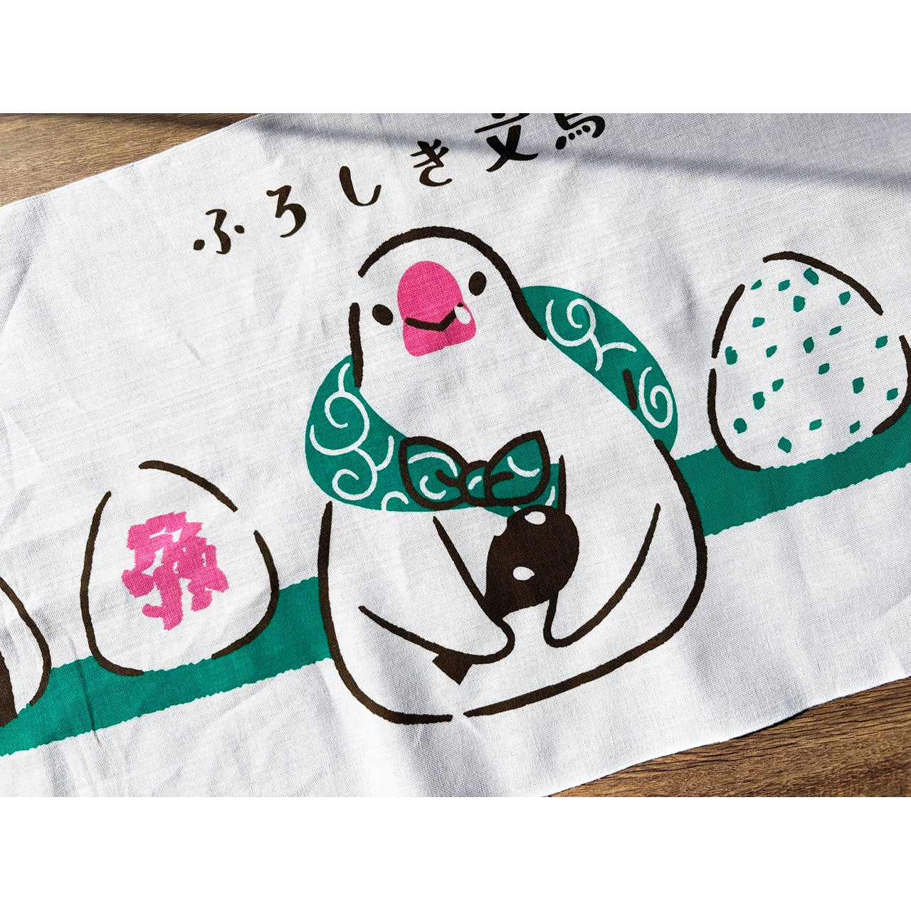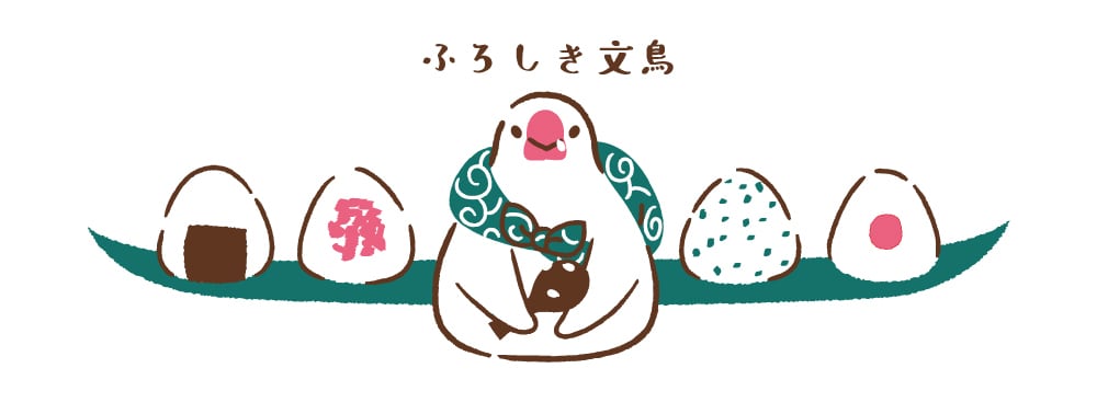 ふろしき文鳥がおにぎりを従えるデザインです。