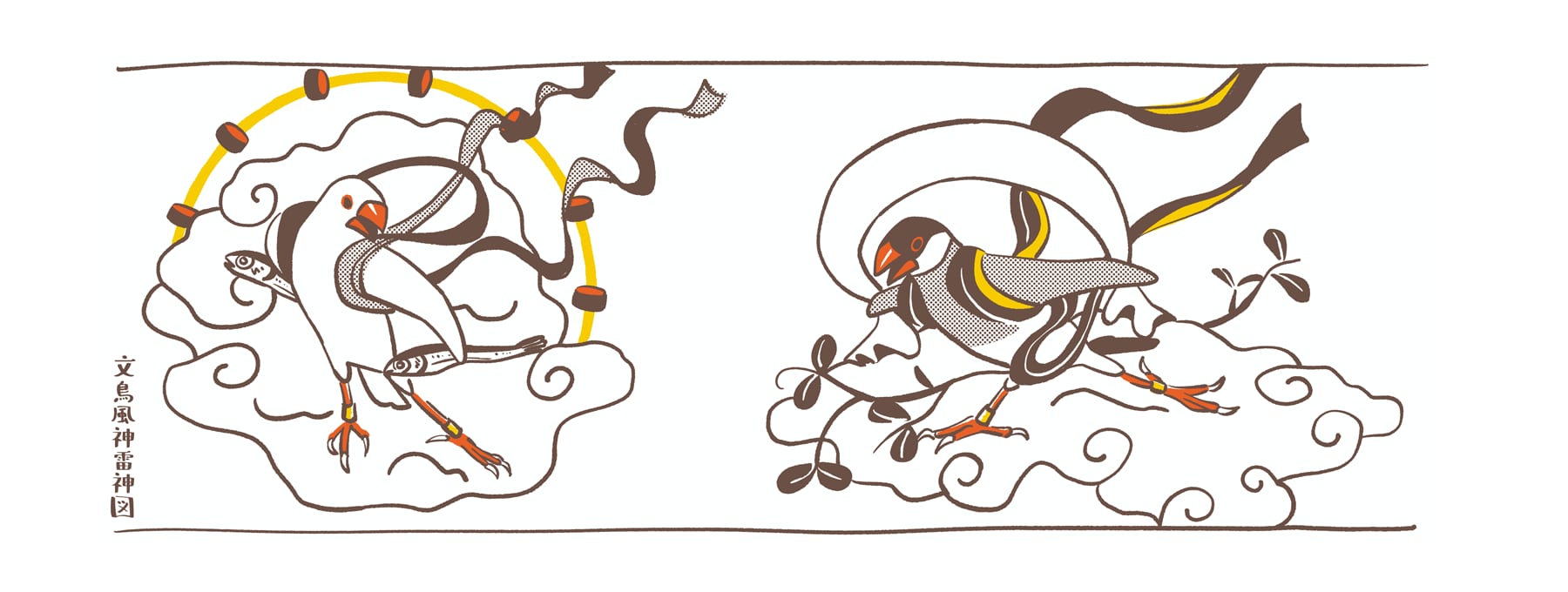 文鳥風神雷神図の手ぬぐいが登場ϵ( ‘Θ’ )϶