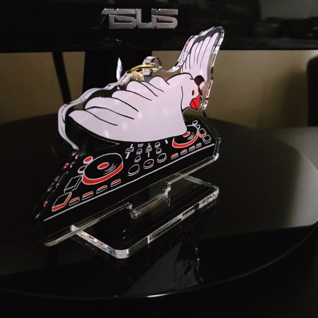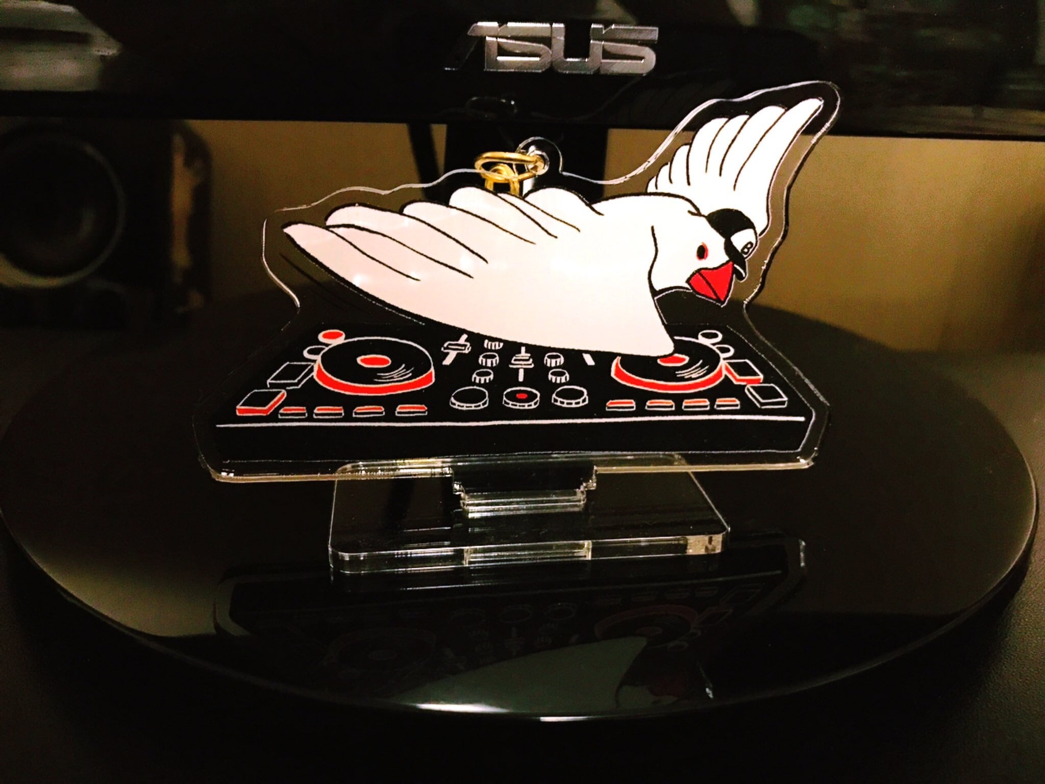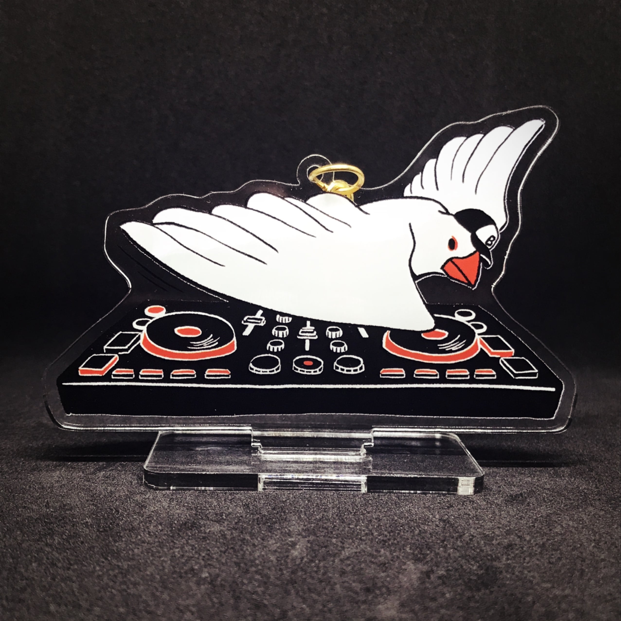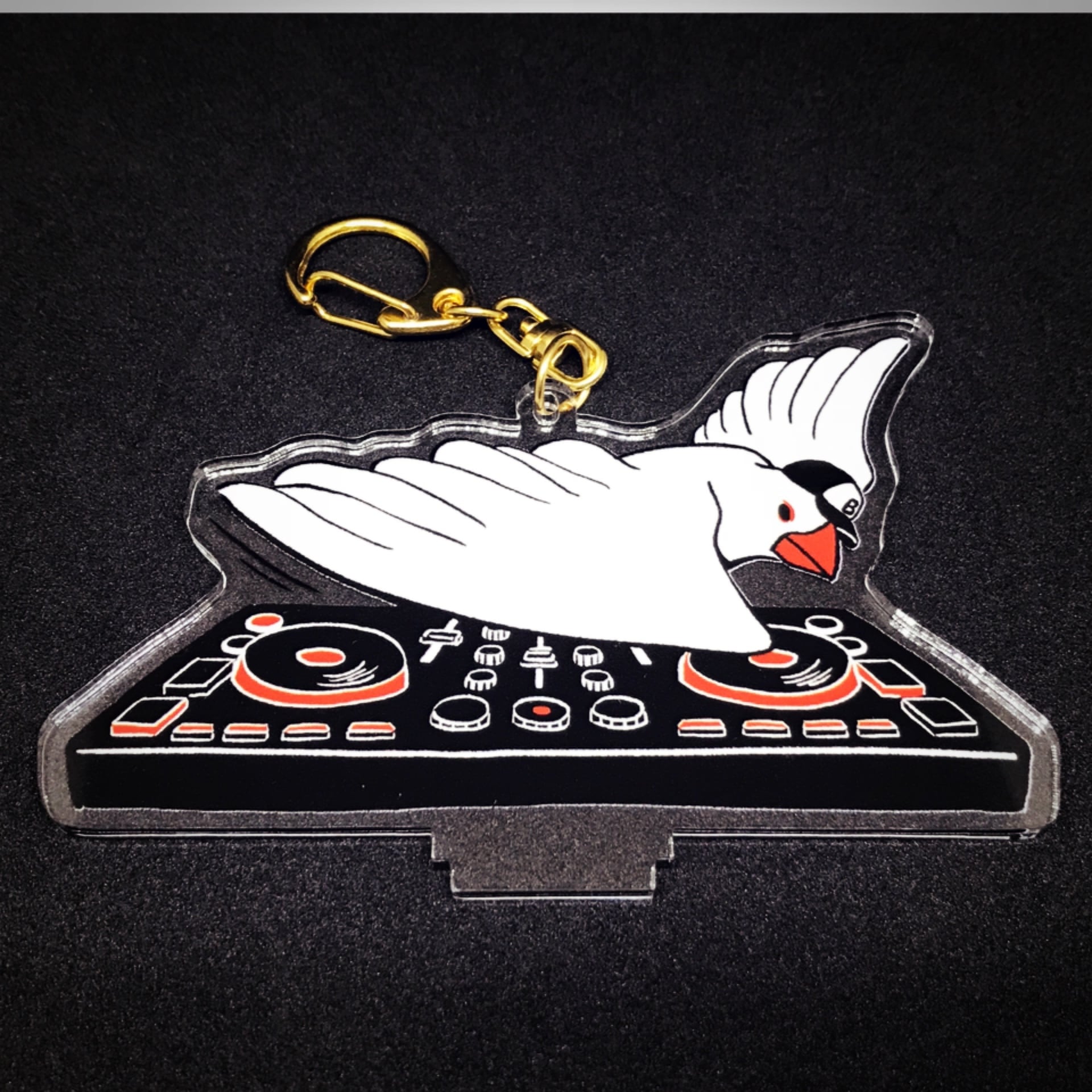 DJを生業にする文鳥、DJブンのアクリルスタンドです。大きめサイズで存在感あり。