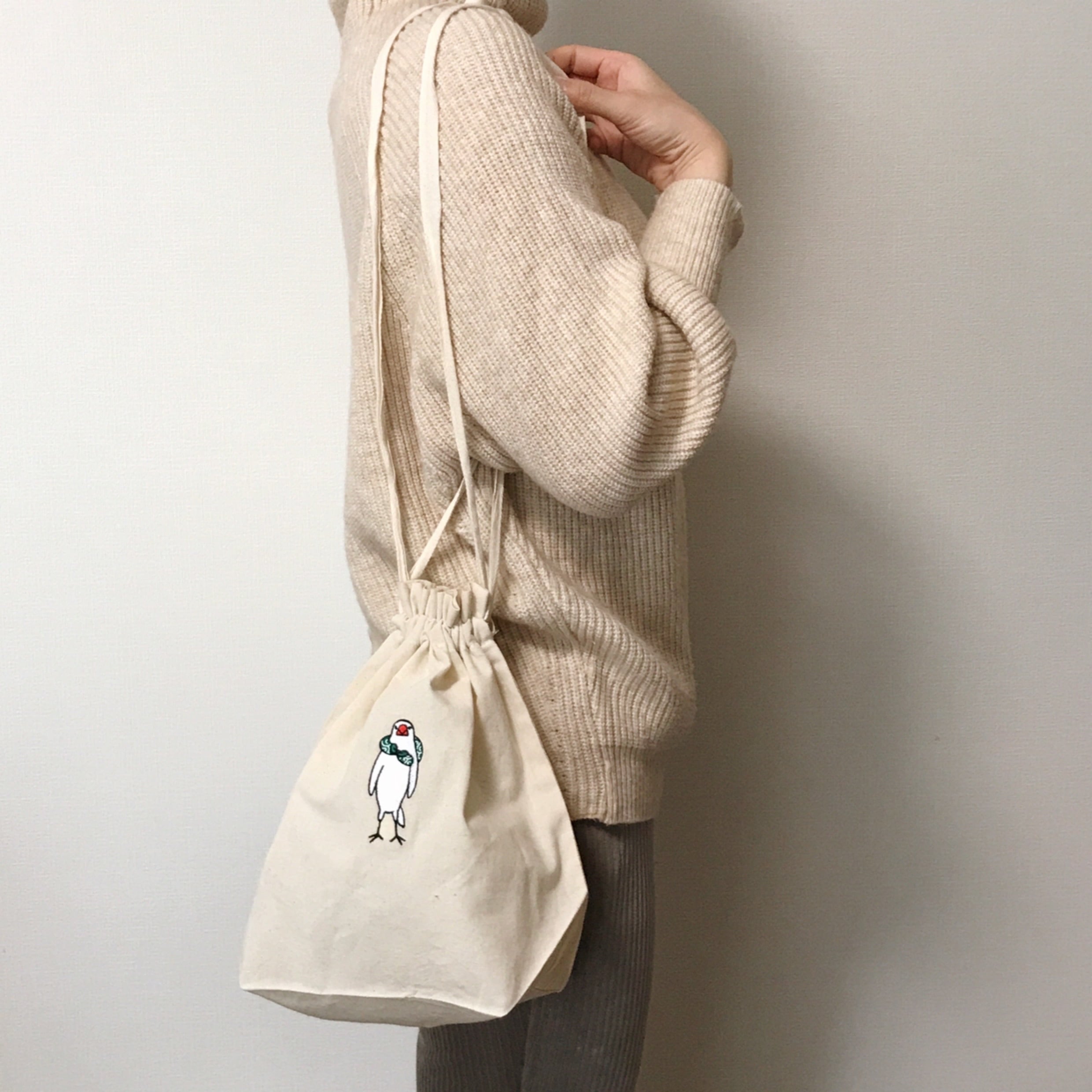 ふろしき文鳥の刺繍入りのコットンマロントート。