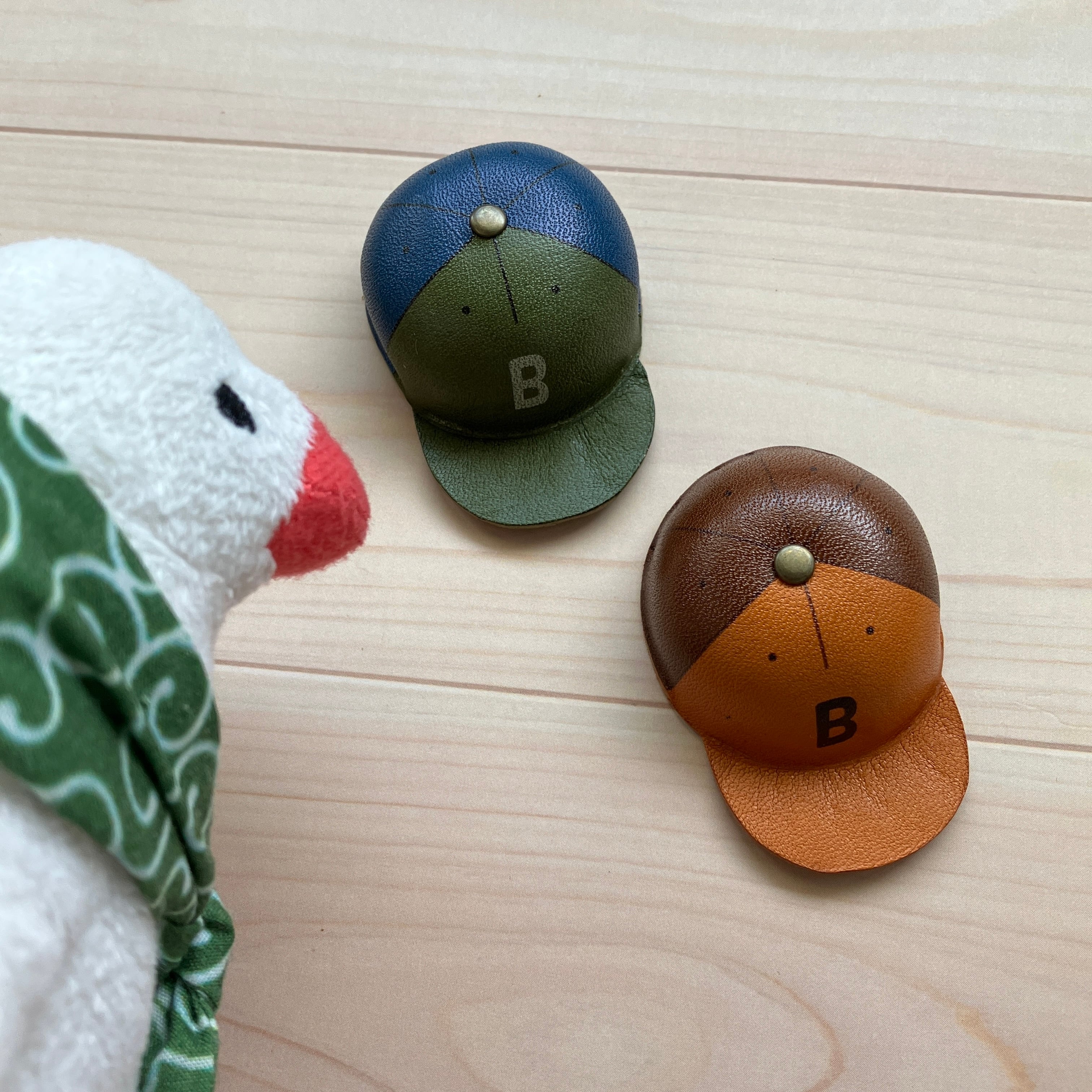 栃木レザーを使用した、バイカラーがおしゃれな本格キャップです。フロント部分には文鳥の「B」がプリントされています。