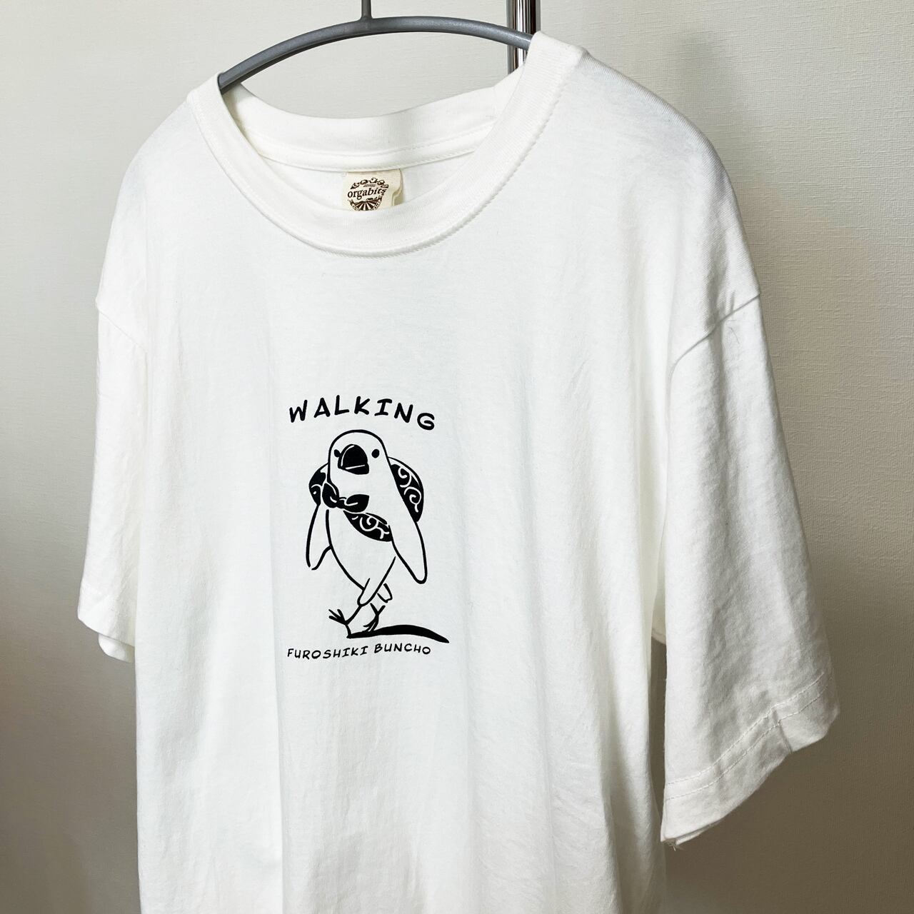 てくてく歩くふろしき文鳥がかわいい半袖Tシャツです。